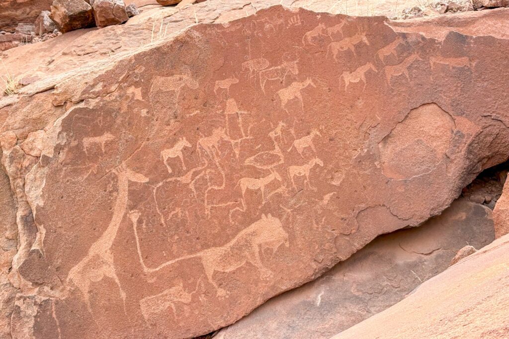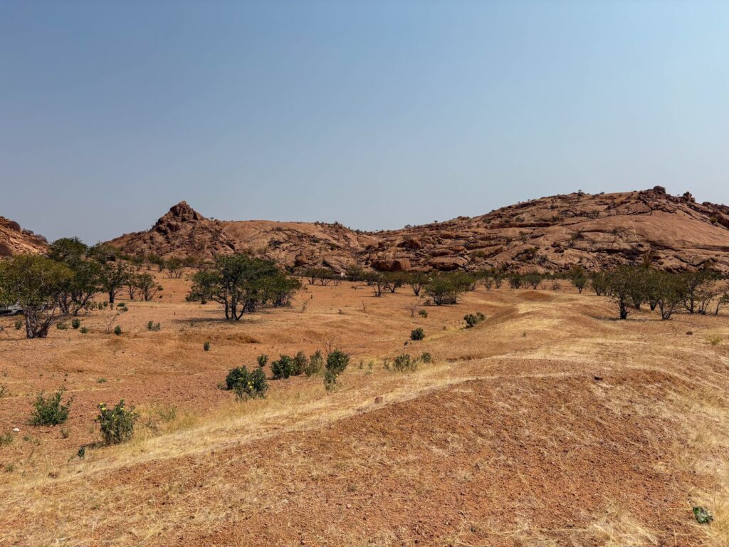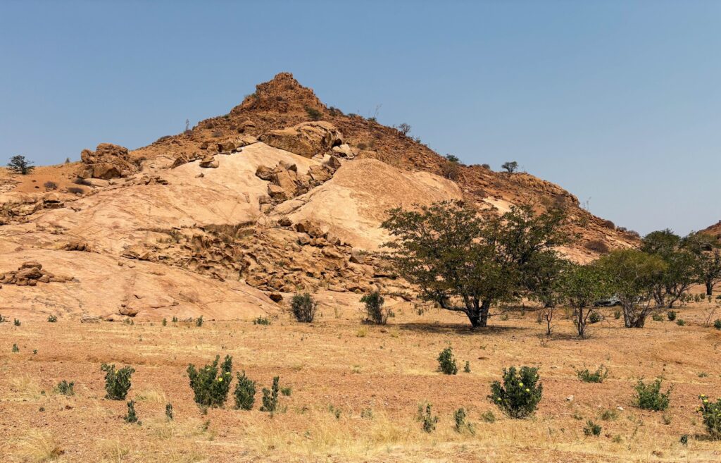 Vor Städten sind oftmals Polizei Checkpoints eingerichtet. Heute trafen wir auf unseren dritten Checkpoint und unseren ersten, der uns ohne „Bakschisch“ nicht mehr weiterfahren lies. Den Ersten haben wir mit mangelnden Englischkenntnissen gemeistert. Der Zweite wollte Einfuhrpapiere des in Südafrika registrieren Mietautos. Wir boten keine Lösung an und mit Geduld ging es weiter. Der Dritte wollte zuerst 1000 Namibische Dollars. Nachdem wir eine Quittung verlangten, war er mit einem Drink für ihn einverstanden. Wir gaben ihm 50 Namibische Dollars, dies entspricht etwa CHF 2,50.