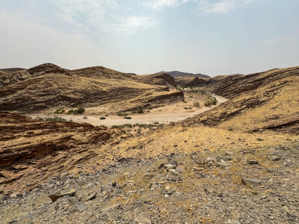 Bis zur Maltahöhe führte die grösstenteils auf Schotter bestehende Strasse durch eine auf die Dauer etwas eintönig erscheinende Savannah. Kurz nach der Maltahöhe brachte der Zaris eine eindrückliche Bergwelt ins Spiel. Bei der Weiterfahrt öffneten sich die Bergtäler und die Landschaft wurde eine Nuance grüner. Eindrücklich schön, wie auch die Fortsetzung dieses Tages.